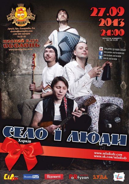 Несподіваний сюрприз і візит харківської ватаги "Село & Люди"! Чуваки одного разу вже приїжджали до Кораблика з концертом і порвали всіх вщент. Але після їх суперпояви на телебаченні в проекті "Україна має талант" ми вже гадали, що ніколи цих зіркових музикантів не побачимо. Для тих, хто не в курсі підкажемо: "Село і Люди" виконують кавер-версії рок- і поп-хітів у стилі, який представляє собою унікальну суміш американської рок культури і слов'янських музичних традицій. Переплітаючи драйв, шоу, потужність рок-музики з танцювальними ритмами, щирістю та невимушеністю народних мотивів, команда притягує до себе кожного, хто попадає до них на концерти!