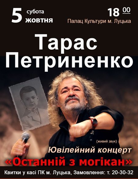 Народний артист України Тарас Петриненко представляє ювілейну концертну програму "Останній з могікан".