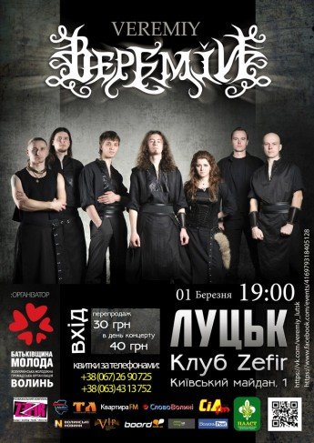 Дракони рухаються у напрямку Луцька! Для усіх поціновувачів справжньої української музики! З концертною програмою "Гартуючи вогнем" завітає яскравий представник сучасного українського року - гурт "Веремій".