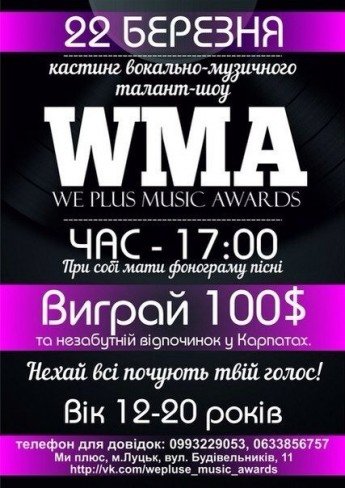 Музичний кастинг. Ви маєте можливість виграти 100$ або відпочинок у Карпатах.