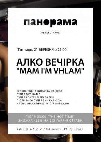 • Після 24:00 - знижка -30% на абсент, старий Талін та самбуку.