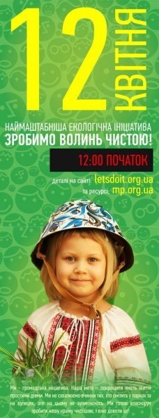 Запрошуємо свідомих еко-активістів долучитись до екологічної ініціативи «Зробимо Волинь чистою!», що є частиною Всеукраїнської акції «Зробимо Україну чистою».
