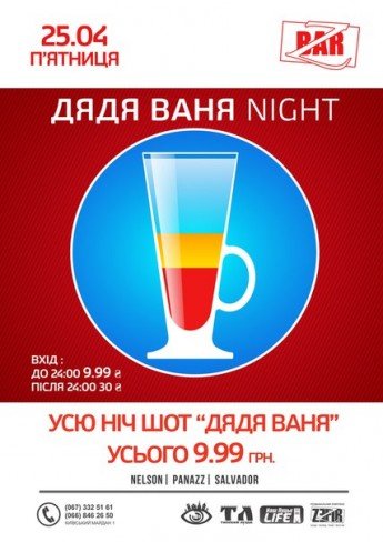Протягом усієї ночі шот Дядя Ваня усього 9,99 грн.