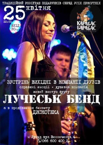 Живий виступ гурту Лучеськ  бенд, а в продовження бенкету - дискотека.
