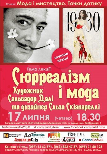 Опис проекту: взаємозв’язок моди і мистецтва, вплив художників на розвиток моди, результати співпраці митців двох паралельних світів, арт-тенденції у колекціях культових дизайнерів,відображення сучасних арт-тенденцій в колекціях сезону весна-літо 2014р. Лекція пройде у формі цікавої розповіді, супроводженої фото-слайдами та відео-матеріалами. (Проект складатиметься з серії лекцій.)