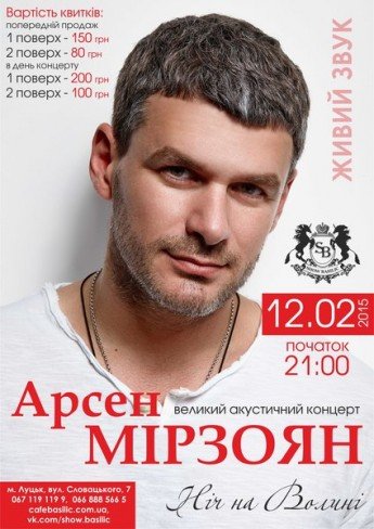Ціна білетів: 1 поверх - 150 грн, 2 поверх - 80 грн (в день концерту: 200 грн і 100 грн)
