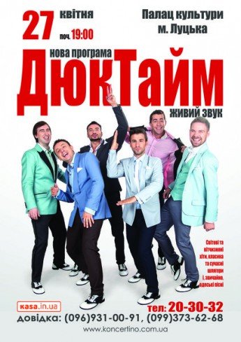 Група DukeTime (ДюкТайм) – чоловічий вокальний секстет – утворилася в серпні 2004 року в Одесі. Теперішній склад групи функціонує з лютого 2005 року і до нього входять шість професійних вокалістів: бас, три баритони и два тенори. Направленння, у якому працюють музиканти – виключно a capella.