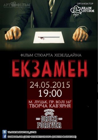 Центр інтелектуального дозвілля «Брейншторм» запрошує усіх на кіноперегляд стрічки Стюарта Хезелдайна «Екзамен».