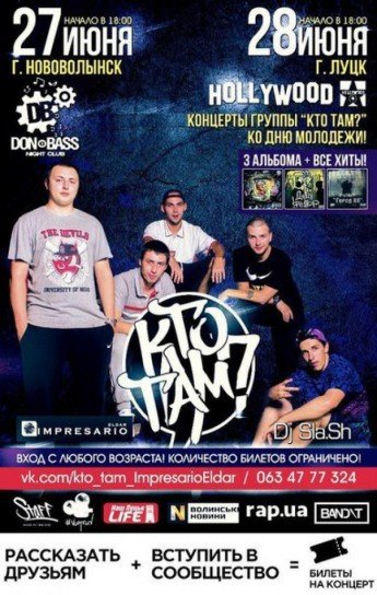 28 червня в клубі «Голівуд» до Дня молоді концерт гурту «Кто там?» Початок о 18:00.