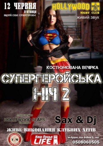 Костюмована вечірка "Супергеройська ніч 2" 12 червня у нічному клубі „Hollywood”.