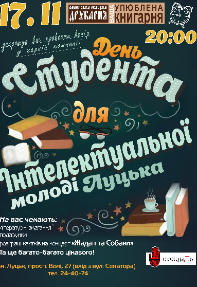 Книгарня Волинської обласної друкарні запрошує провести вечір у гарній компанії.