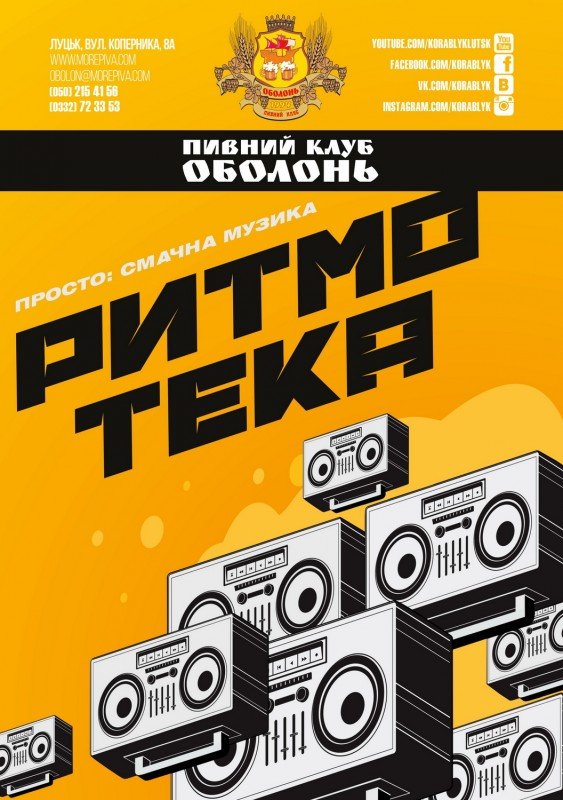 "Запрошуємо на "Ритмотеку" - танці з назвою, що ми запозичили із однієї з пісень гурту "Тартак". Нам здається, що це слово Сашко Положинський вдало підібрав, як альтернативу слову "дискотека". Адже цього вечора ми ставитимемо не лише диско, а й купу хітів у інших стилях - рок, поп, фанк, хіп-хоп, латина, реггі, рок-н-рол та ін. У суботу ми відправлятимемо до наших динаміків як призабуті золоті хіти, так і зовсім свіженькі пісні, які безумовно заслуговують на увагу корабельної публіки! Хороший набір для святкувань днів народжень та інших подій, або просто для гарного відпочинку в гарячій компанії!", - пишуть організатори.