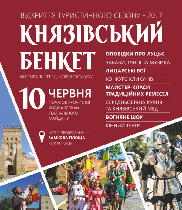 У Луцьку 10 червня з нагоди відкриття літнього туристичного сезону - 2017 відбудеться фестиваль середньовічного духу «Князівський бенкет».