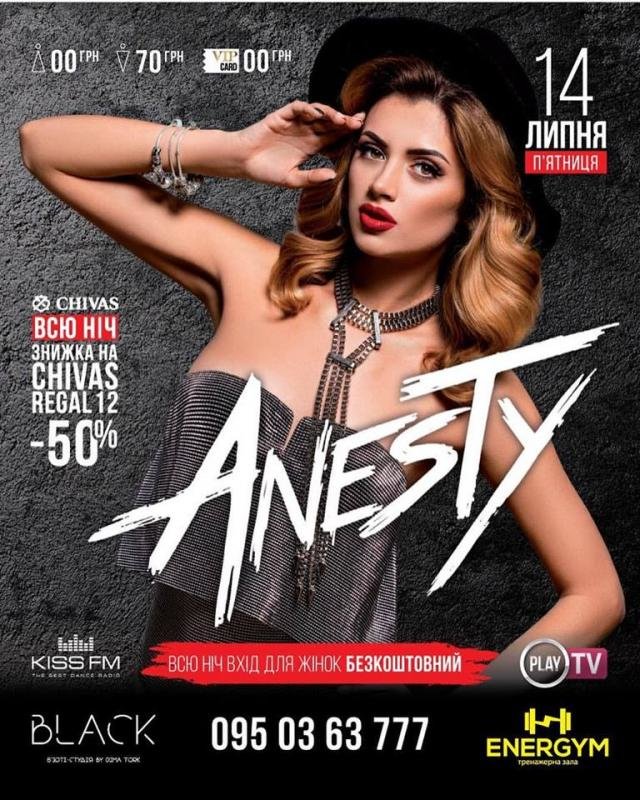 Dj ANESTY- резидент найтанцювальнішої радіостанції країни "KISS FM", резидент музичного телеканалу "PLAY TV".