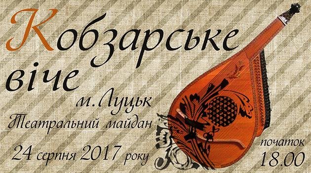 24 серпня в рамках заходів з нагоди Дня Незалежності України на Театральному майдані Луцька відбудеться мистецька акція «КОБЗАРСЬКЕ ВІЧЕ».
