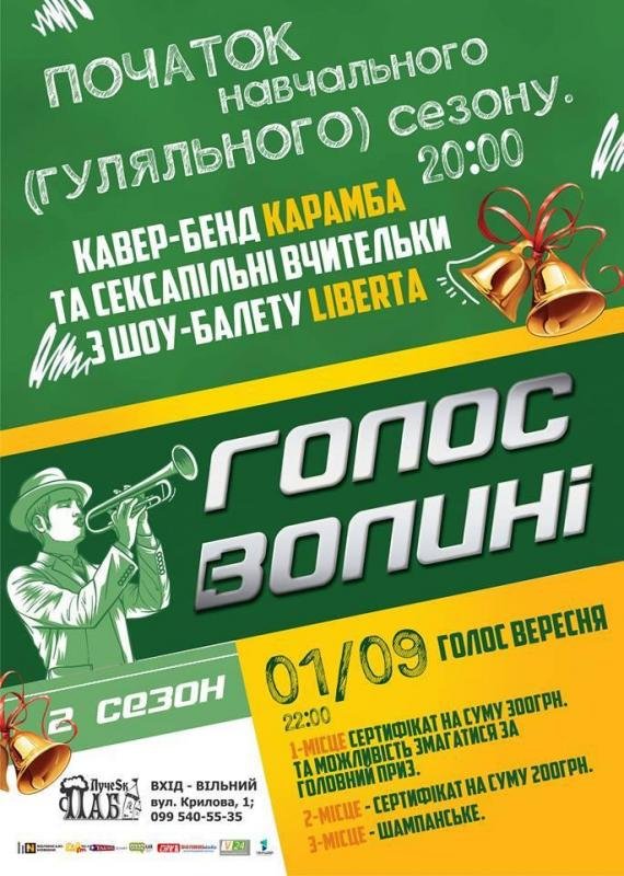 Багато зірок завітають цієї осені і зими до пабу, вже готуються передноворічні корпоративи та святкування Нового року. Вже скоро, а саме в грудні, відбудеться фінал «Голосу Волині». І наше місто почує про переможця та побачить його відеокліп.