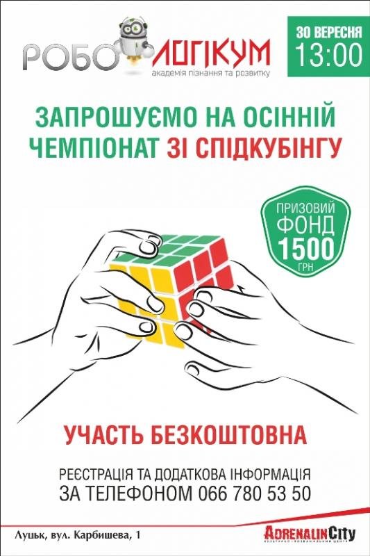 У суботу 30 вересня в Академії пізнання та розвитку «Робологікум», що в «Адреналін Сіті» (Карбишева, 1) відбудеться щорічний осінній чемпіонат зі спідкубінгу.