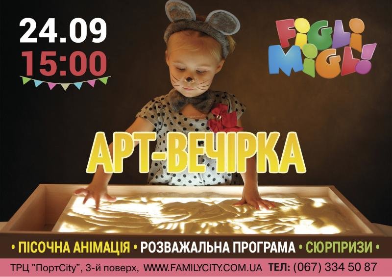«FigliMigli» запрошує на неймовірно креативну арт-вечірку. Для дітей підготували захоплюючу програму, майстер-клас з пісочної анімації й звісно призи. Вхід – вільний.
