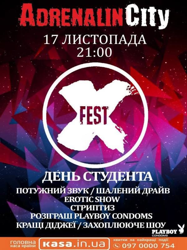 17 листопада 21:00 Адреналін Сіті: Шалене святкування ДНЯ СТУДЕНТА! Грандіозний тур X-fest Lutsk в ЛУЦЬКУ