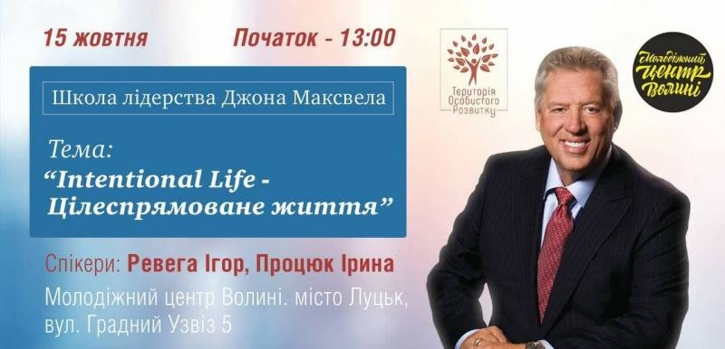 Спікер проведе відкриту зустріч: Intentional Life - Цілеспрямоване життя.