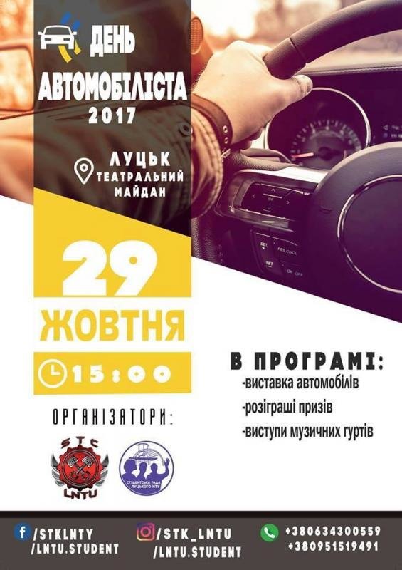 Спортивно-технічний клуб та Студрада Луцького національного технічного університету запрошують лучан і гостей міста на події з нагоди для автомобіліста.