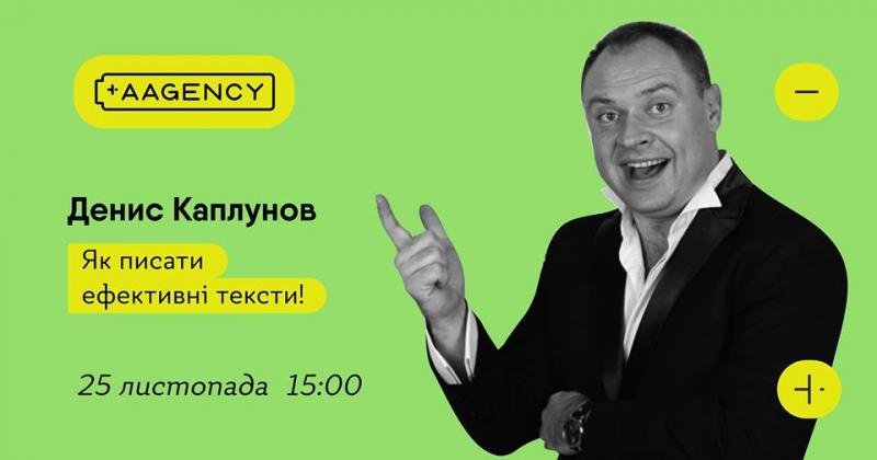 Спікером буде Денис Каплунов - копірайтер, засновник СEО Студії Дениса Каплунова, автор книг "Контент, маркетинг и рок-н-ролл", "Бізнес-копірайтинг", "Нейрокопірайтинг".