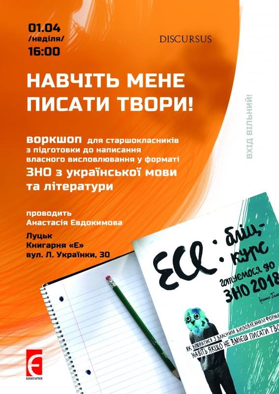 Воркшоп проведе вчителька української мови та літератури Анастасія Євдокимова за мотивами воркбуку «Есе: бліц-курс»