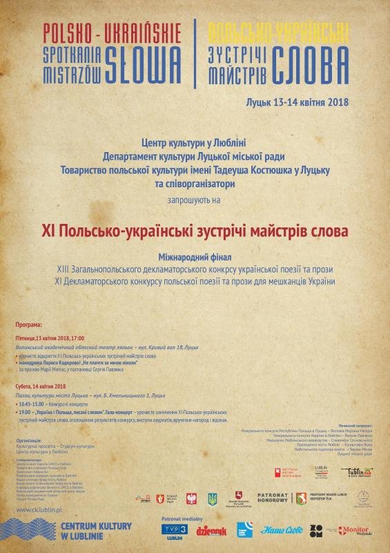 XI Польсько-українські зустрічі майстрів слова включають міжнародні фінали Декламаторського конкурсу польської поезії і прози в Україні та Загальнопольського декламаторського конкурсу української поезії і прози