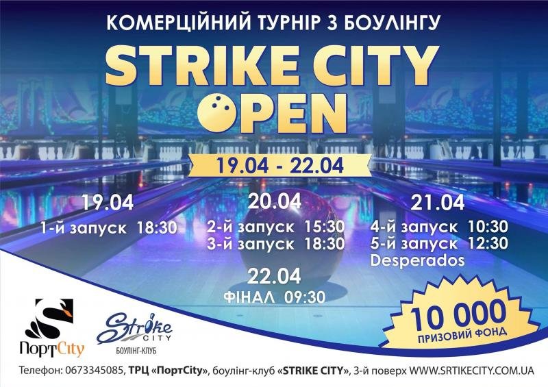 3 19 по 22 квітня включно уStrikeCiti буде проводитися Відкритий Всеукраїнський Турнір з спортивного боулінгу з призовим фондом 10 000 грн!Наразі зареєструвалося понад шістдесят учасників.