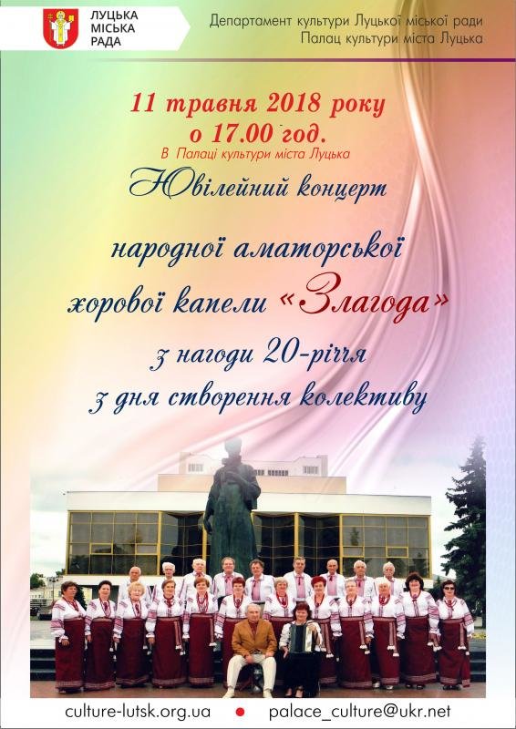 • Ювілейний концерт народної аматорської хорової капели "Злагода"