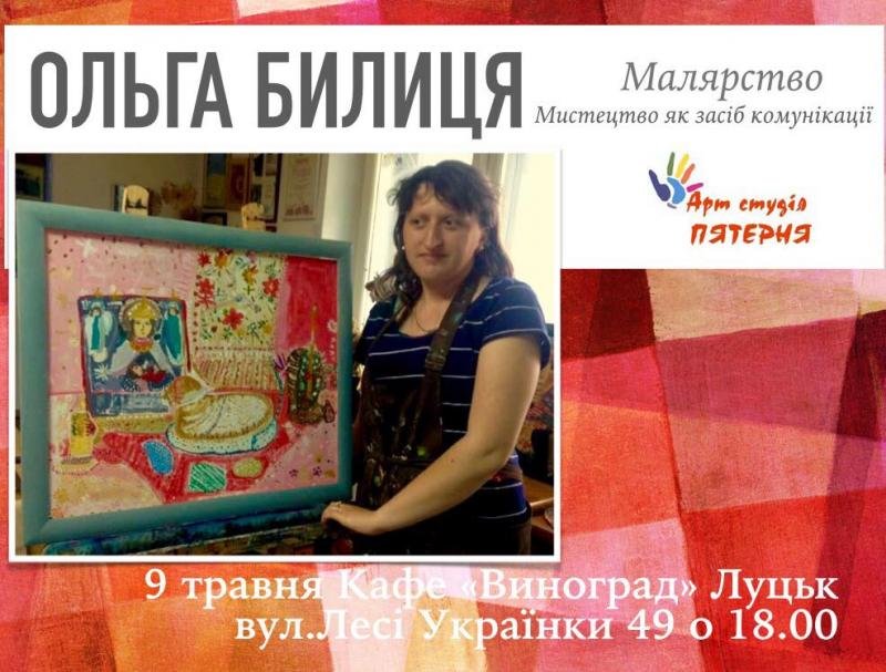 "Мистецтво як засіб комунікації" - під таким гаслом 9 травня о 18:00 у кафе "Виноград" проходитиме виставка-продаж творчих робіт молодої художниці.