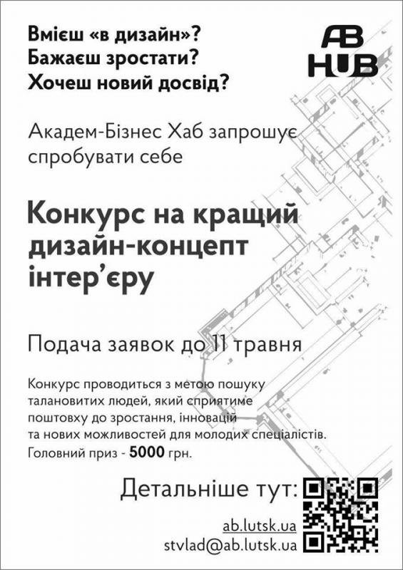 Бажаючим прийняти участь у Конкурсі необхідно пройти реєстрацію: до 11 травня 2018 року відправити заявку на електронну пошту [email protected] і отримати підтвердження про реєстрацію (разом з підтвердженням ви отримаєте технічне завдання Конкурсу). Деталі за посиланням www.ab.lutsk.ua