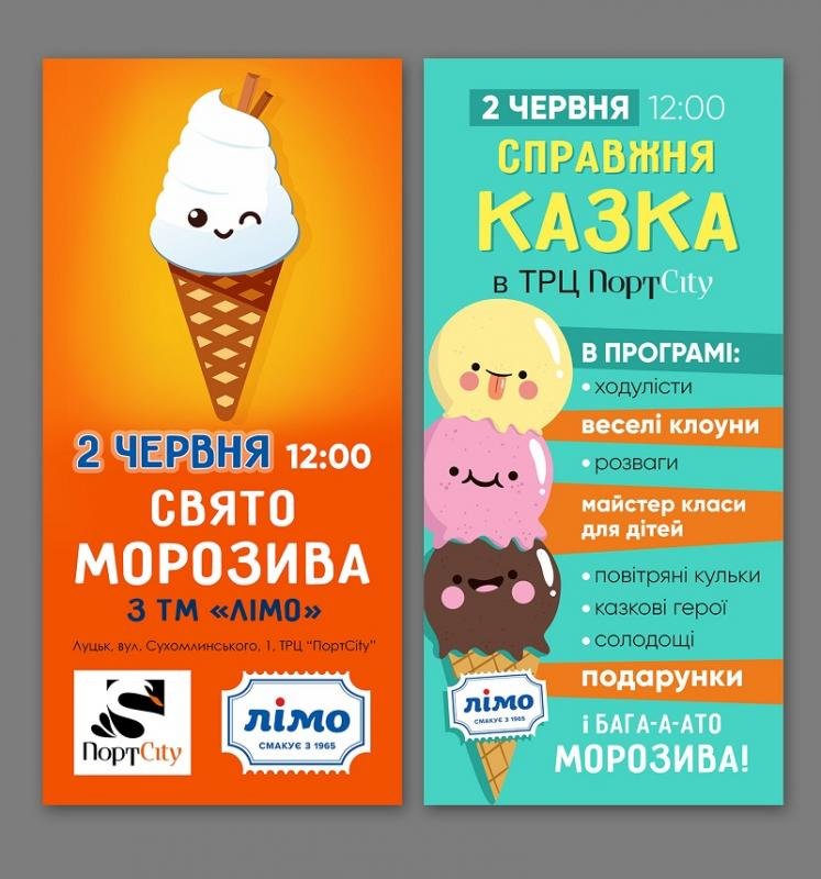 Запрошуємо усіх дітей, для яких у цей день будуть виступати аніматори в образах казкових героїв , ходулісти , клоуни, будуть проводитись різноманітні майстер класи, естафети , ігри та конкурси. Також діти зможуть безкоштовно поласувати смачним морозивом та солодощами, адже весь день буде тривати свято морозива для від ТМ Лімо.
