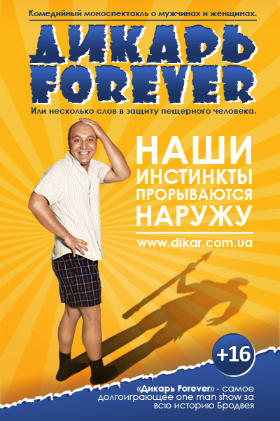 “О Чем Молчат Мужчины или Дикарь FOREVER” – это спектакль, в котором примиряются две галактики, два космоса – Мужчина и Женщина. Зритель, хохоча от начала до конца спектакля , под занавес обнаруживает, что легко ответил для себя на вопрос «Как смириться и ужиться со своей второй половинкой?» Не даром «Дикарь» так популярен во всем мире! А в Нью-Йорке 18 июля объявлен Днем Пещерного человека и 44-я улица переименована в «Дорогу пещерного человека»