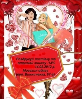 • Лише в день святого Валентина отримає знижку в Магазині одягу
