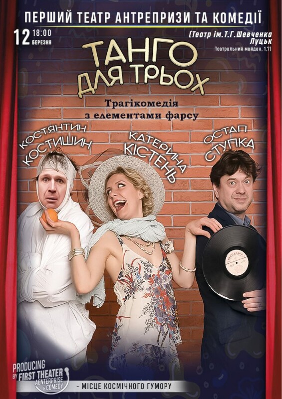 “Танго для трьох” - це унікальна своєрідна трагікомедія, яка більше ніж на 2 години занурить вас у вічну тему - стосунків чоловіка та жінки.