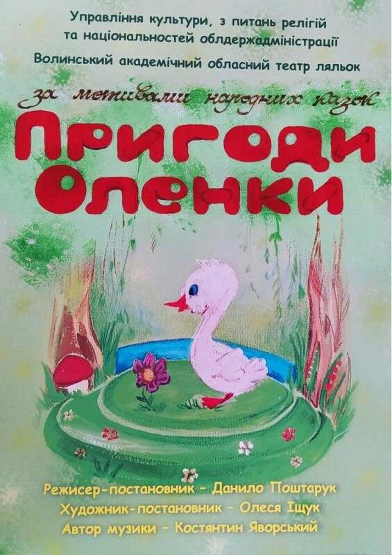 Ця вистава - про дівчинку Оленку, яку бабуся послала пасти гусеня. А воно таке неслухняне! Оленка вже втомилася за ним слідкувати, аби воно гарно паслося, не ходило до болота. І щоб часом його не вполювала лисиця.