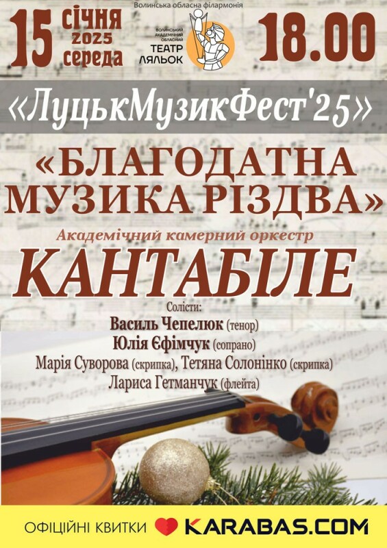 • «Благодатна музика Різдва». Акадеічний камерний оркестр «Кантабіле»