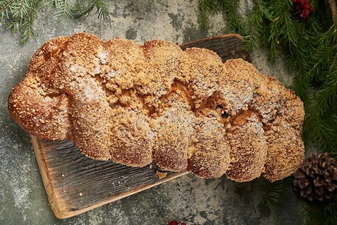 - Струцля — запашна плетінка, з трьома видами начинки одразу: горіхи із згущеним молоком, смородиновий конфітюр та мак — ідеальне поєднання до чаю у зимовий вечір.