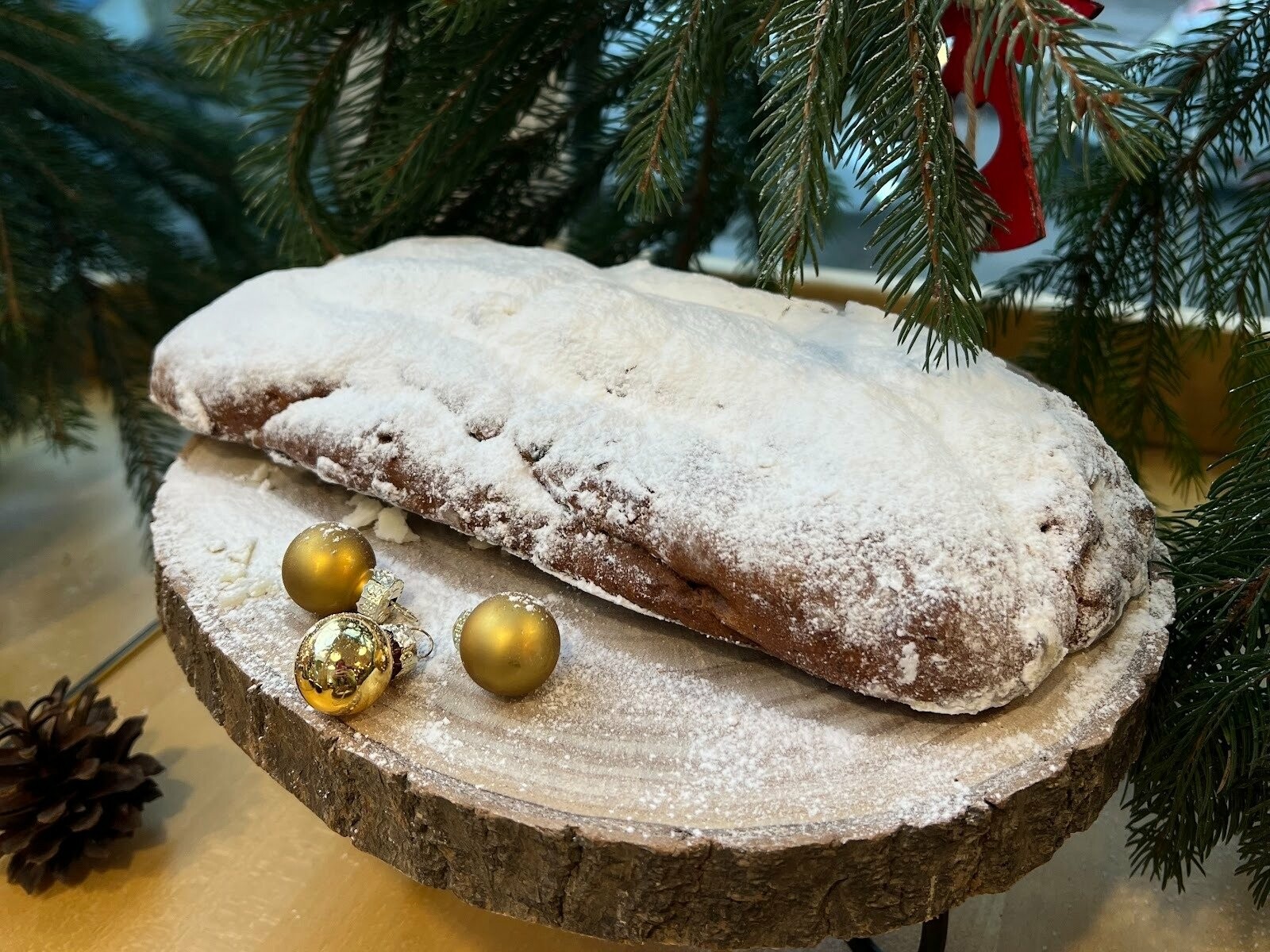 - Штолен — щедрий на цукати, горіхи, родзинки з ніжним марципаном у середині. Він набирає смаку з кожним днем, тому ідеально підходить як подарунок.