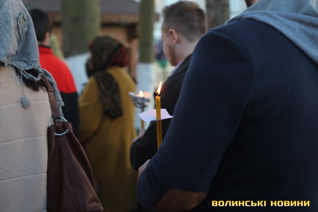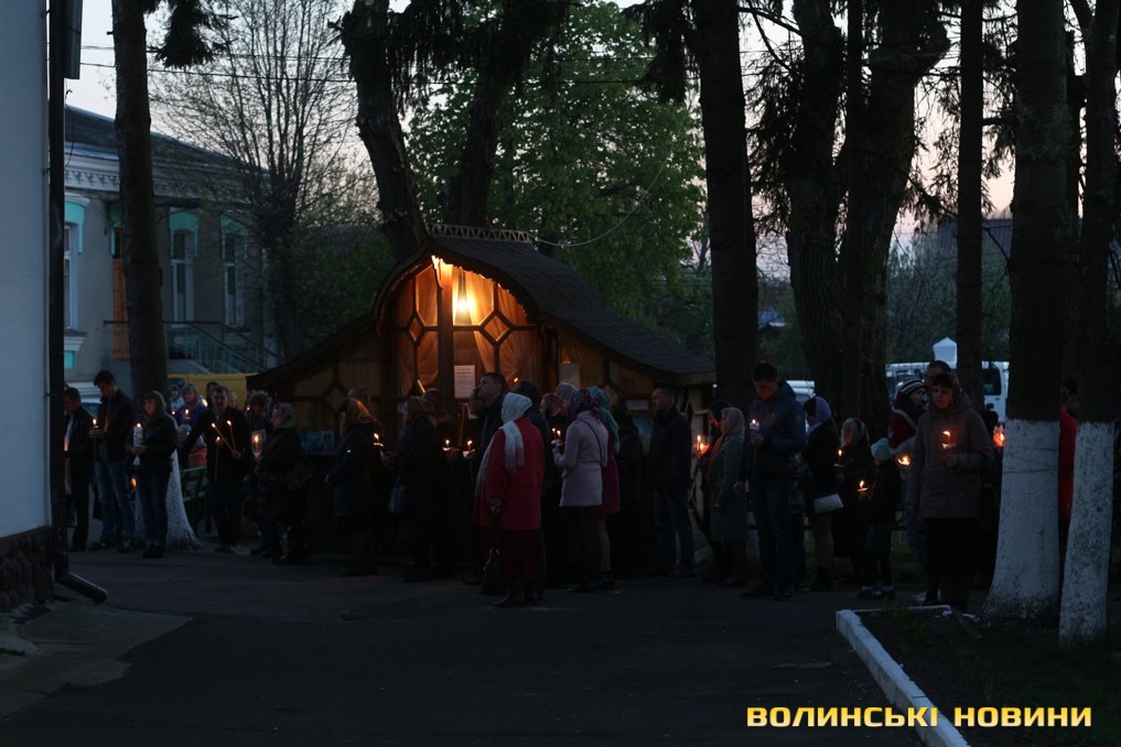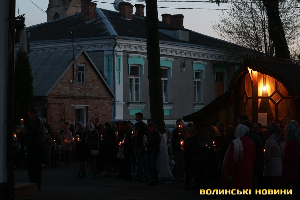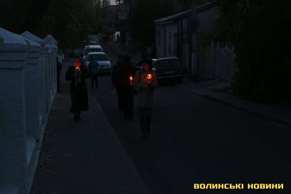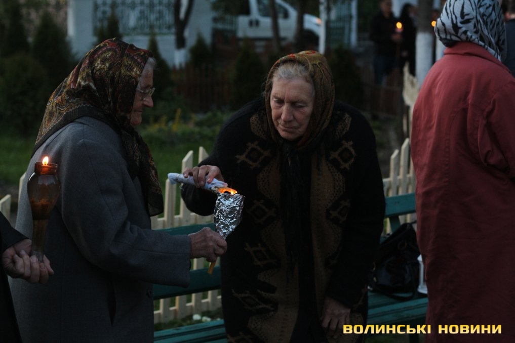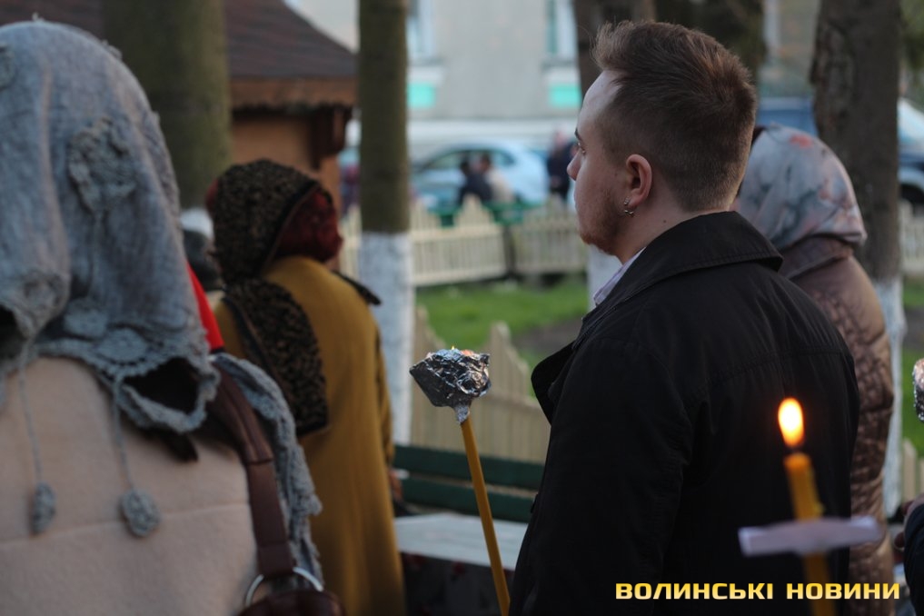 Сотні лучан у чистий четвер несуть з церкви страсний вогонь. В лампадках, воскових ліхтарях чи простих свічках – його бережно доставляють додому, аби освятити ним оселю, - за матеріалом інформаційного агенства "Волинські новини".