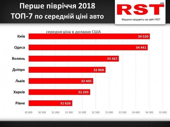 Найбільше нових автомобілів купили кияни. Вони придбали понад 15 тис. автівок і витратили $500 млн. У столиці максимальна середня ціна авто – понад $34 тис. Найдешевші машини зареєстрували в Сумах - $26 тис. Більше 20% зареєстрованих нових автівок коштували понад $35 тис.