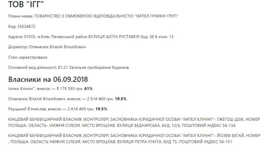 У 2018 році "Імпел Гріффін Груп" встигла виграти багатомільйонні тендери на прибирання Нацбанку, "Укренерго", "Нафтогазу України", Міністерства соцполітики України, "Київводоканалу" тощо.