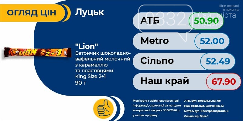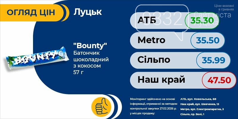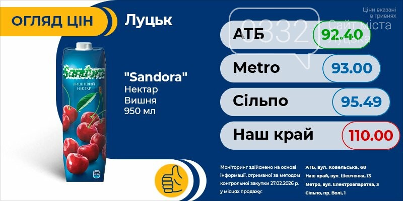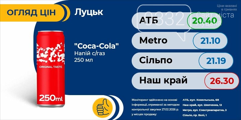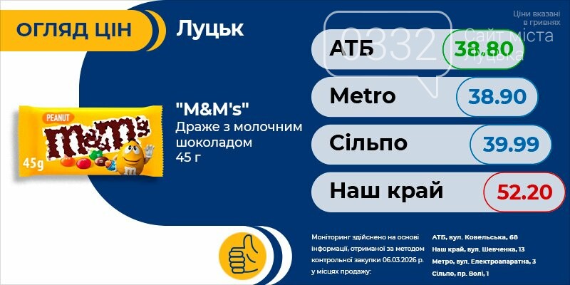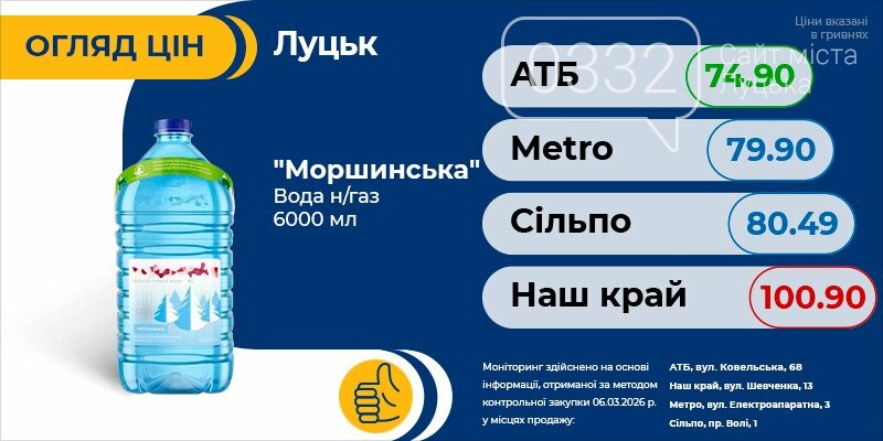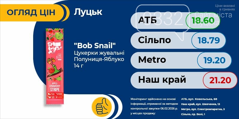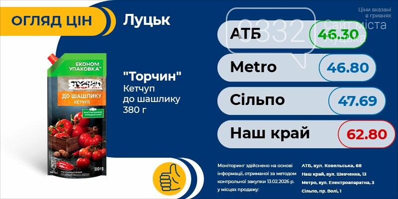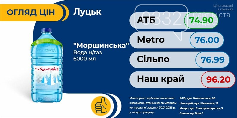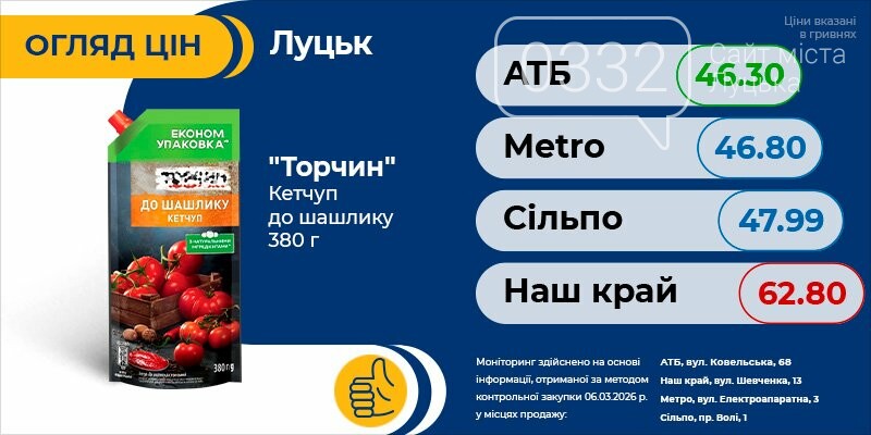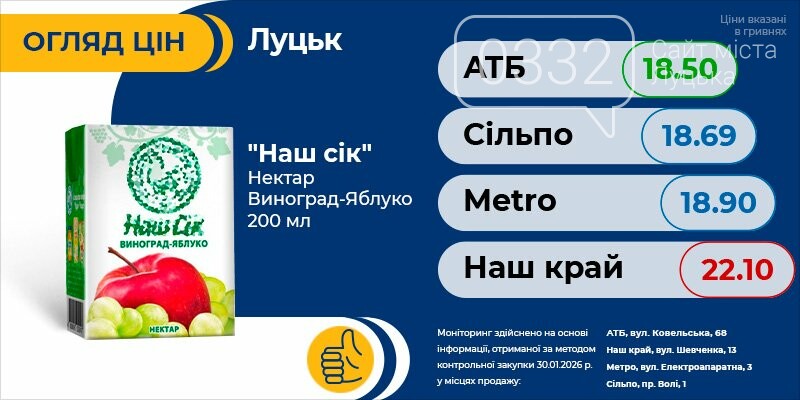 Тільки актуальна інформація про всі ціни на продукти в Луцьку. Регулярні оновлення про акції та знижки швидко зорієнтують вас і допоможуть зробити правильний вибір.